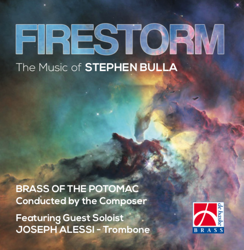 Firestorm: The Music of Stephen Bulla By Stephen Bulla: Into the Sky; Festivus Americas; River Quest (Joseph Alessi, trombone solo); Decade Celebration; Canzone and Caprice (Kevin Maloney, cornet solo); Firestorm; Euphonium Fantasia (Brandon Jones, euphonium solo); The Higher Plane (Michael Delaune, soprano cornet solo); Concertante for Band. Performed by: Brass of the Potomac (Stephen Bulla). Label: de Haske CD DHR 03 067-3